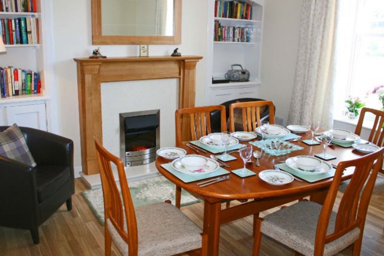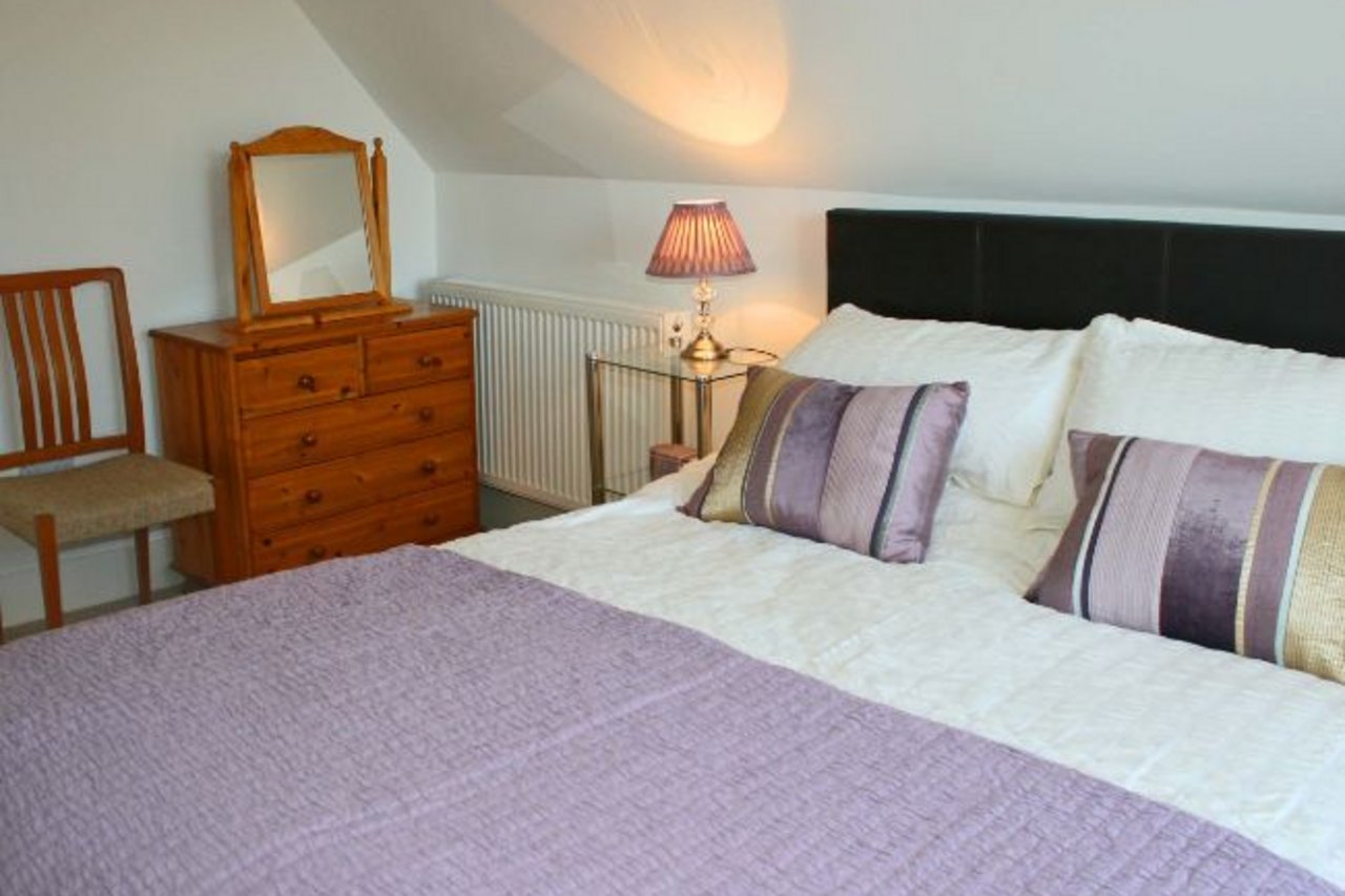 Die Unterkunft hat im Obergeschoss zwei Schlafzimmer zu bieten, darunter ein Doppelzimmer mit King-Size-Bett (etwa 1,80 Meter breit) sowie ein Zweibettzimmer. Im Erdgeschoss befindet sich das Badezimmer mit Duschbadewanne und WC. Das Wohnzimmer ist modern eingerichtet mit Flachbild-Fernseher, DVD-Spieler und Musikanlage. Das geräumige Esszimmer bietet bequem Platz für bis zu sechs Personen und verfügt zudem über einen kleinen Kamin. Die Küche ist ausgestattet mit Herd, Kühl- und Gefrierschrank, Mikrowelle sowie einer Geschirrspülmaschine. Im Hauswirtschaftsraum finden Sie außerdem eine Waschmaschine und einen Wäschetrockner. Im Außenbereich steht Ihnen neben Gartenmöbeln und einem Grill auch ein Schuppen zur Verfügung, indem Sie sicher Fahrräder und andere Sportgeräte unterbringen können.