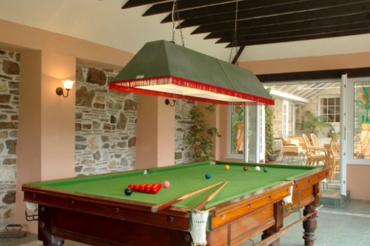 Die Unterkunft hat 6 Schlafzimmer, darunter 3 Doppel- und 1 Einbettzimmer, 1 Zweibett- sowie 1 Dreibettzimmer. Zwei der Doppelzimmer haben einen direkten Zugang zu eigenen Bädern, ausgestattet mit Dusche und WC. Zusätzlich gibt es zwei separate Badezimmer, eines mit Badewanne, Dusche und WC, das andere mit Dusche und WC. Das gemütliche Wohnzimmer verfügt über einen Holzofen und einen Flachbild-Fernseher mit DVD-Spieler, zuzüglich einer Auswahl an Filmen, Spielen und Büchern. Die große Küche ist mit 2 Elektroherden, 2 Kühl- und Gefrierschränken, einem Weinkühler, Geschirrspüler sowie Mikrowelle ausgestattet. Im geräumigen Esszimmer finden alle Bewohner bequem Platz. Ein beliebter Ort zum Entspannen ist der Wintergarten, der Sitzgelegenheiten und einen Billardtisch zu bieten hat. Im Hauswirtschaftsraum können Waschmaschine und Trockner genutzt werden. Im Außenbereich stehen ein Whirlpool sowie Gartenmöbel sowie ein Grill zur Verfügung.