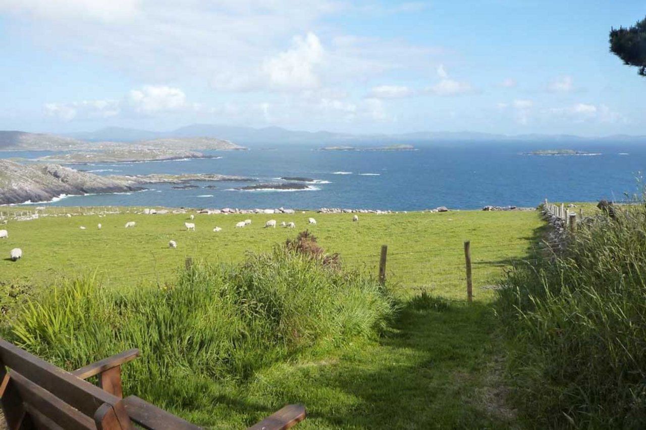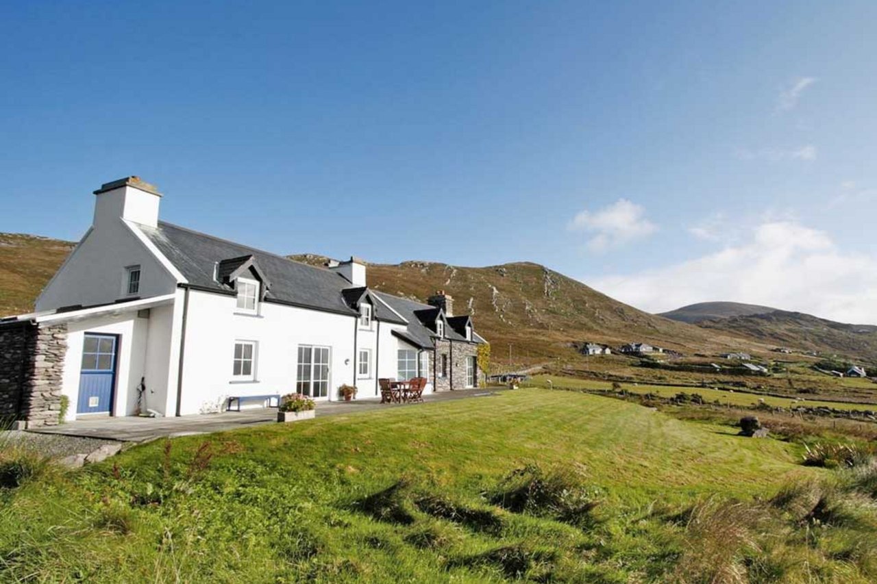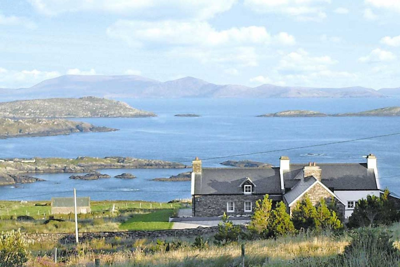 Diese Ferienunterkunft ist eingebettet in die Landschaft der Halbinsel Iveragh in der Grafschaft Kerry. Gelegen auf einer leichten Anhöhe, genießen Sie einen spektakulären Blick direkt über den atlantischen Ozean und über die ländliche Umgebung. Die traditionelle Außenfassade sowie die geschmackvolle Einrichtung im Innern verleihen dem Ferienhaus ein charmantes Flair. Besonders die geräumigen Räume bieten Ihnen einerseits genügend Rückzugsmöglichkeiten, andererseits gemeinsame Momente nach einem ereignisreichen Tag. Der weitläufige Garten, mit einer uneingeschränkten Sicht über die idyllische und ruhige Landschaft, lädt zu erholsamen Stunden ein.